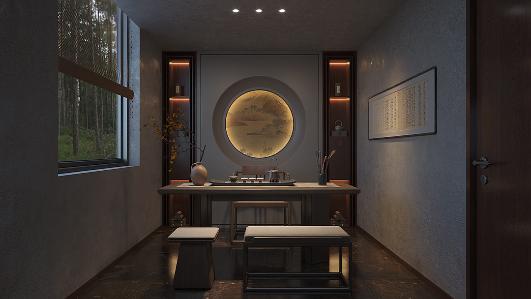 針對不同場景需求,劃分開放品茗區、私密包廂及商務洽談區。例如大廳設置可移動格柵實現空間靈活分隔,包間融入榻榻米茶席與獨立衛浴,兼顧社交儀式感與實用性。 - 細節處的文化敘事
