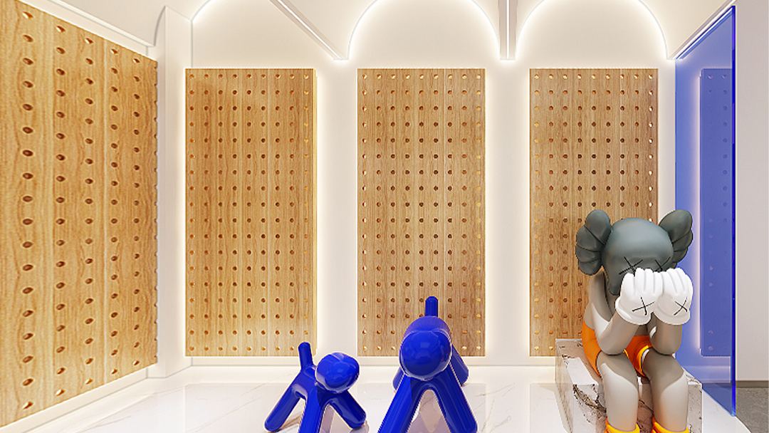 以淺灰水泥漆墻面搭配原木色防火板飾面,局部點(diǎn)綴圓角鏡面不銹鋼防抓條;照明系統(tǒng)結(jié)合4000K防眩射燈與智能調(diào)光面板,可根據(jù)不同時(shí)段切換“營(yíng)業(yè)模式”與“夜間安撫模式”。