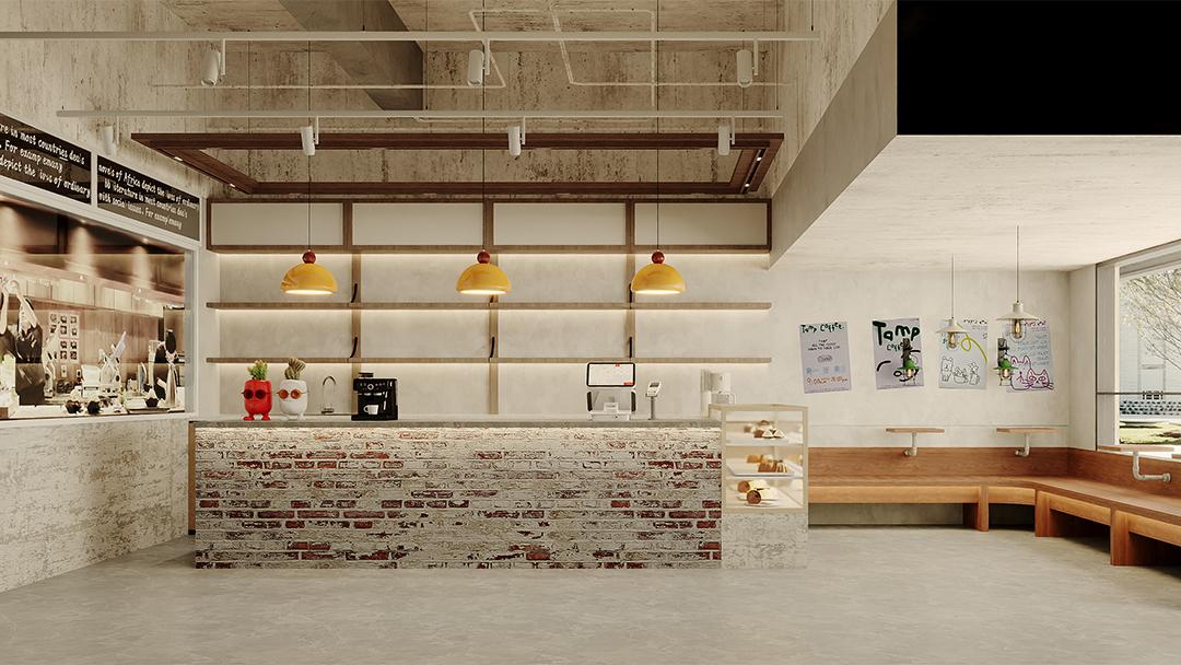 從弧形吧臺到模塊化卡座設計,兼顧顧客互動需求與私密角落;隱藏式收納柜體保持空間整潔,而手繪菜單板、復古打字機等裝飾則凸顯店主的個性品味。