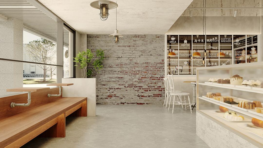 通過落地窗引入自然光,輔以暖黃色燈串和藤編吊燈,打造層次豐富的照明效果;店內點綴琴葉榕、薄荷綠植墻或懸掛式盆栽,讓空間煥發生機,呼應“城市綠洲”的主題。 - 功能與美學的平衡