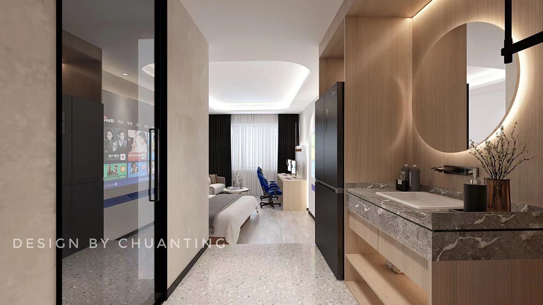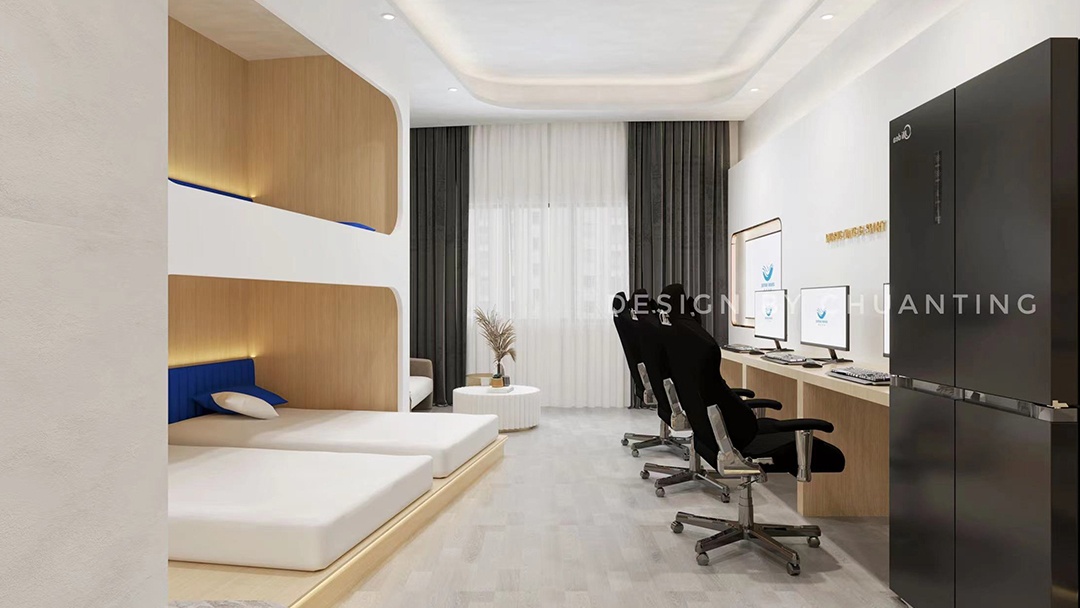 在設(shè)計(jì)上,注重空間規(guī)劃的合理性。對(duì)于電競(jìng)酒店客房,會(huì)根據(jù)不同房型布局,確保滿足住宿與電競(jìng)娛樂的雙重功能,同時(shí)兼顧舒適性與科技感。如設(shè)置合理的電競(jìng)設(shè)備擺放位置、舒適的休息區(qū)域等。