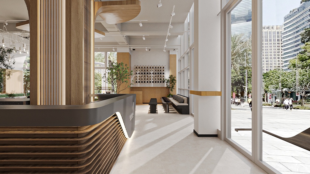 杭州高端烘焙店裝修設計,本案以“可食用藝術館”為核心理念,空間以博物館級燈光與大理石材質營造沉浸式展陳氛圍。定制弧形玻璃展柜懸浮于金屬網格系統之上,精準呈現面包的工藝細節。中央島臺融合可升降烘焙演示設備,打造劇場化互動體驗。墻面采用微水泥與黃銅鑲邊,結合香氛與背景音效系統,從視覺、嗅覺、聽覺多維度構建高端感知。后廚透過環形霧化玻璃若隱若現,在保持神秘感的同時傳遞專業級標準。