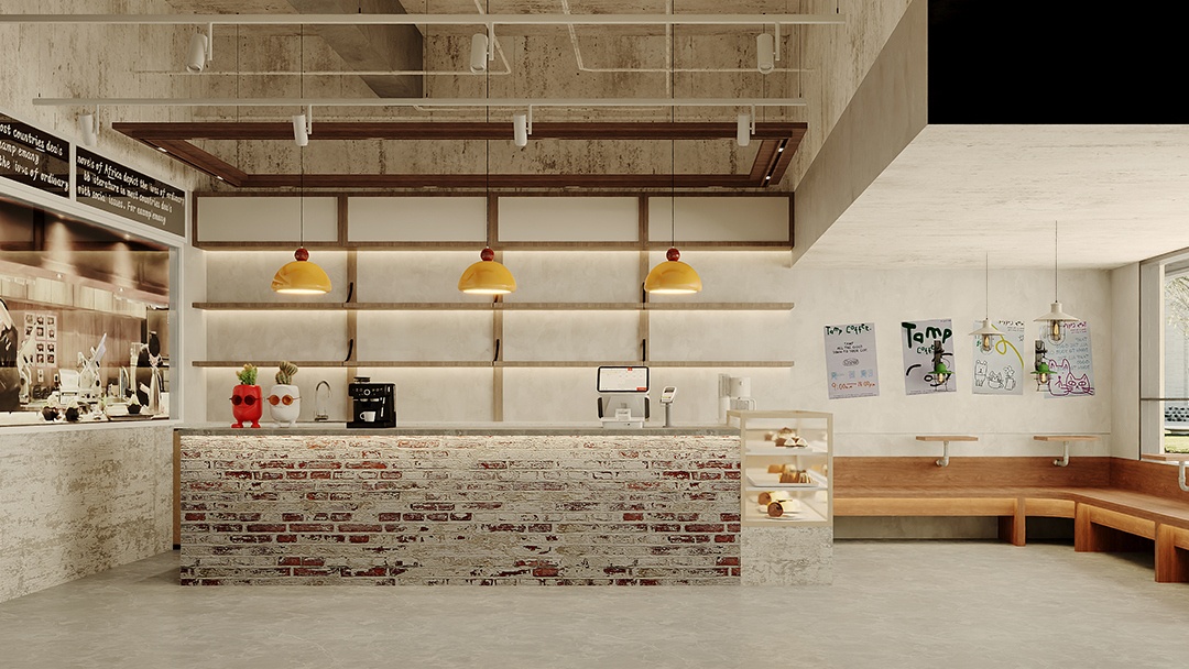 杭州工業風烘焙店裝修設計,本案以“裸感美學”為基調,保留原始混凝土結構與銹蝕鋼架,搭配暖調木元素平衡冷峻感。中央設置可透視的定制銅管發酵箱陣列,成為動態藝術裝置。照明采用軌道射燈與工業吊燈組合,精準聚焦于面包陳列臺。回收舊木板拼接的客座區,與銹鋼板吧臺形成質感碰撞,點綴攀援綠植軟化空間。整體以“未完成的精致”為理念,在粗獷中凸顯手作溫度與工藝可視性。
