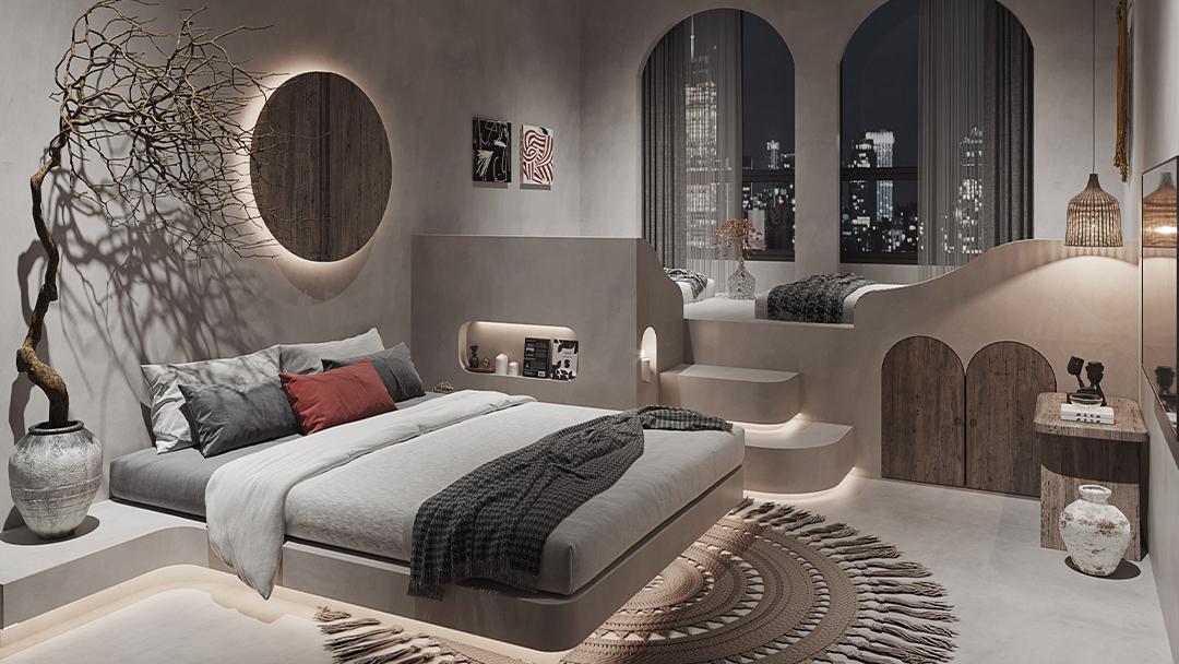 杭州露營風(fēng)酒店設(shè)計(jì)裝修設(shè)計(jì),以“城市野趣”為核心理念,通過架空木棧道、仿真草坪與集裝箱模塊組合,在都市中打造沉浸式自然場景。室內(nèi)采用做舊原木、帆布與金屬收納系統(tǒng),搭配全景觀星天窗及仿真篝火裝置,兼顧安全與氛圍感。智能控制系統(tǒng)實(shí)現(xiàn)帳篷區(qū)溫濕度調(diào)節(jié),公共區(qū)域設(shè)多功能戶外裝備墻及攝影打卡點(diǎn),將露營體驗(yàn)與精品酒店舒適度完美融合,形成差異化競爭優(yōu)勢(shì)。