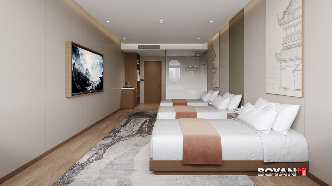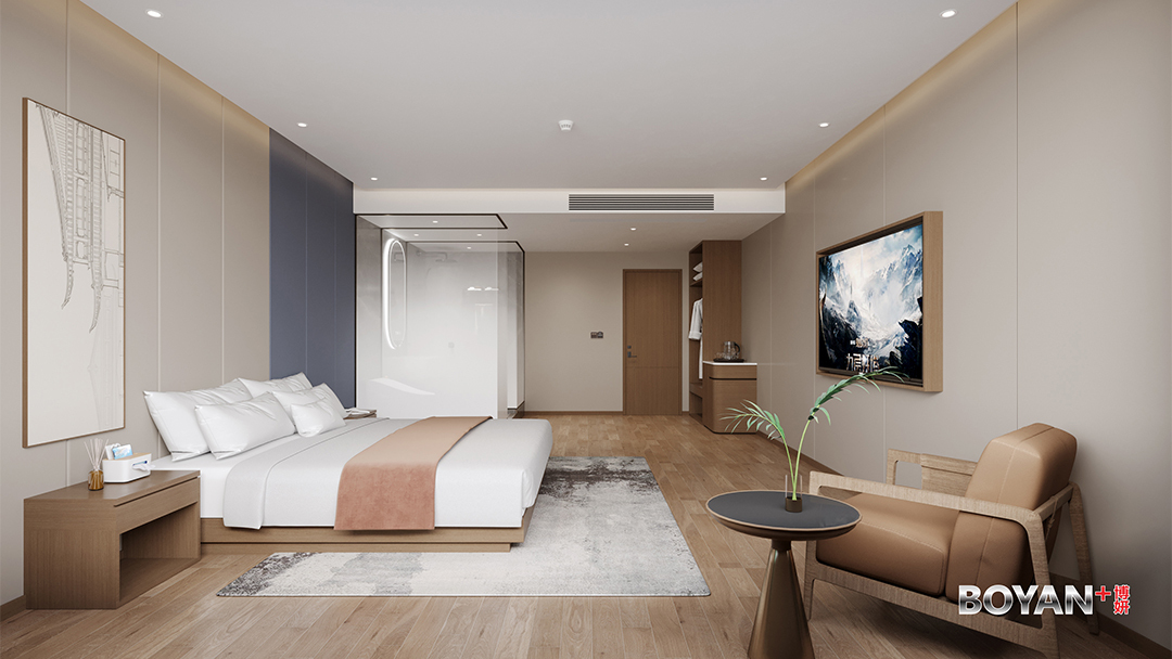 杭州主題套房酒店設計裝修,本案以“一室一宇宙”為核心概念,打造八大沉浸式敘事場景套房。其中“茶山秘境”套房復刻龍井梯田景觀,植入霧化玻璃與光影模擬晨霧山嵐;“宋韻書閣”套房以立體藏書墻面搭配可移動閣樓臥榻,營造文人棲居意趣。每間套房均整合智能情境控制系統,一鍵切換氛圍照明、音效與香氛,并隱藏式集成拍攝輔助燈光,完美兼顧深度體驗與社交媒體傳播需求,實現主題酒店差異化競爭優勢。