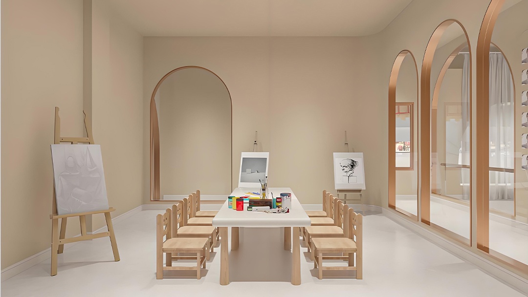 杭州藝培機(jī)構(gòu)裝修設(shè)計(jì),本案以“藝術(shù)發(fā)生器”為核心理念,打破傳統(tǒng)教室邊界。空間采用可移動(dòng)展墻與模塊化工作臺(tái),支持繪畫、手作、多媒體等課程的快速場(chǎng)景轉(zhuǎn)換。頂部軌道系統(tǒng)懸掛各類創(chuàng)作工具與作品,墻面保留部分粗礪肌理供即興涂鴉。自然光經(jīng)北向高窗漫射入內(nèi),搭配專業(yè)顯色照明系統(tǒng)。中央設(shè)置“靈感共享艙”——階梯式開放展臺(tái)結(jié)合數(shù)字投影墻,鼓勵(lì)作品展示與跨界交流,營(yíng)造自由且激發(fā)創(chuàng)造力的藝術(shù)孵化環(huán)境。