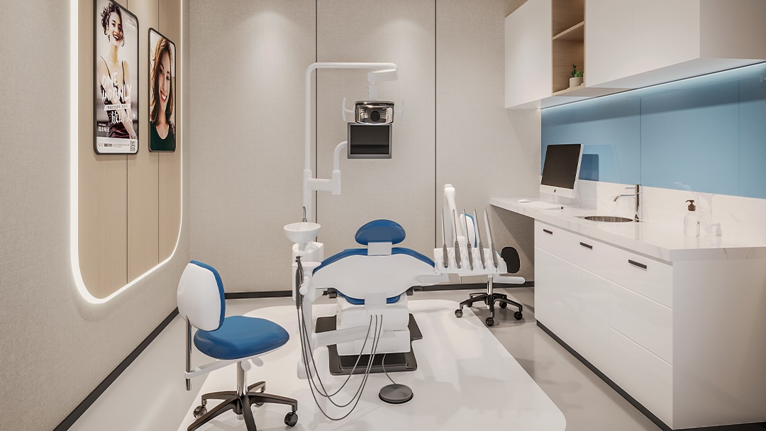針對口腔診所的特殊性,博妍裝飾從三大維度打造高性價比方案:在功能布局上,嚴格遵循醫(yī)療規(guī)范,劃分接待區(qū)、診療區(qū)、消毒供應(yīng)區(qū)等核心板塊,確保潔污分流、動線高效;在材料選擇上,采用醫(yī)用級抗菌板材、無縫地面處理系統(tǒng)及環(huán)保涂料,既保障環(huán)境安全又控制長期維護成本;在人性化體驗方面,通過柔光漫反射照明、低飽和度色彩搭配以及靜音隔音設(shè)計,提升患者舒適度的同時降低運營能耗。