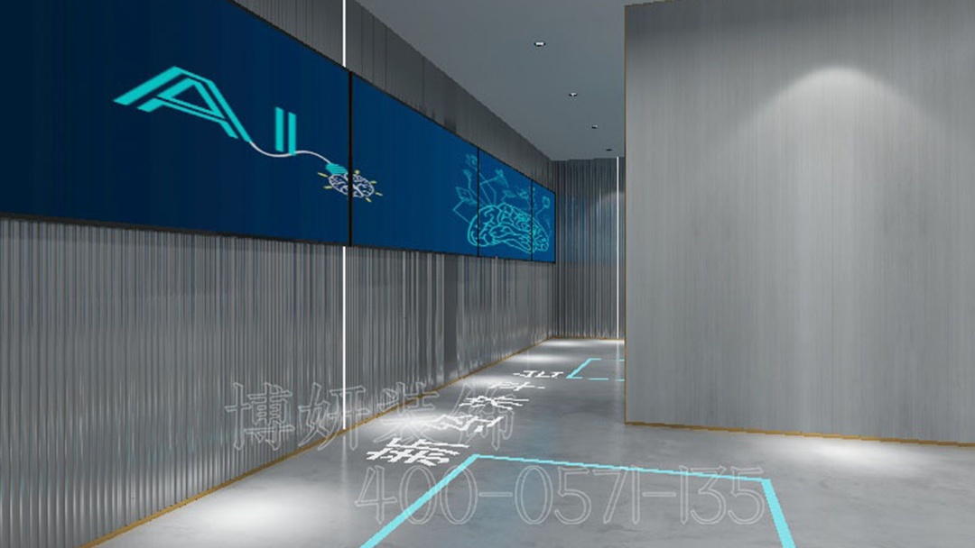 多媒體設備與空間設計完美融合,通過互動展示、沉浸式體驗等形式,讓參觀者深度感受數字科技的魅力。杭州數字多媒體展廳,以灰白藍的色彩搭配與線性燈帶的巧妙運用,打造出一個大氣、前沿且極具吸引力的科技展示空間。