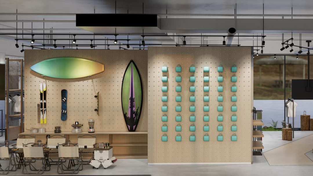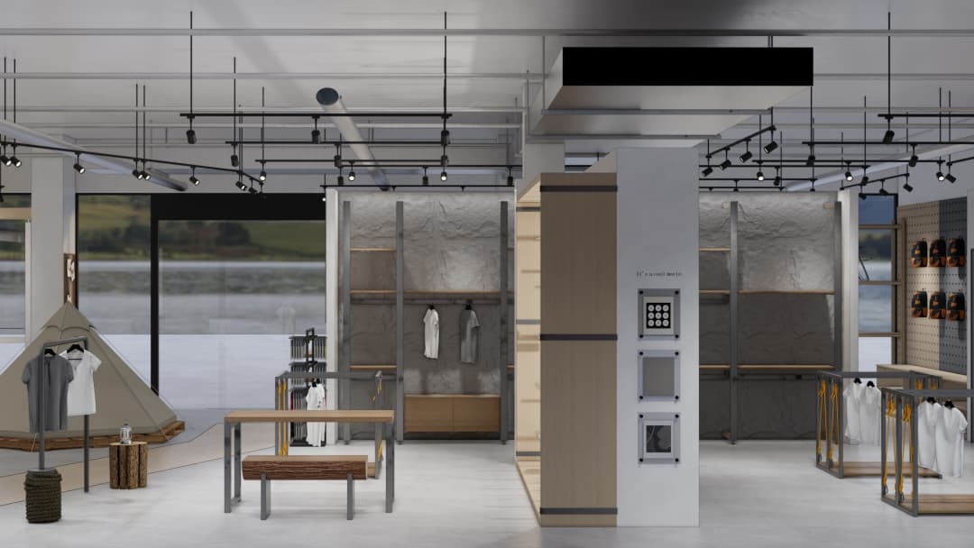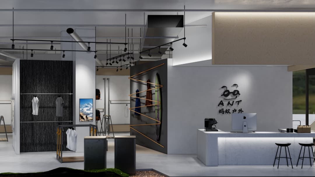 - 功能分區(qū)優(yōu)化:設(shè)置動態(tài)展示區(qū)與靜態(tài)試衣間,通過高低錯落平臺劃分區(qū)域,既保證顧客探索動線的流暢性,又滿足裝備試用的專業(yè)需求;