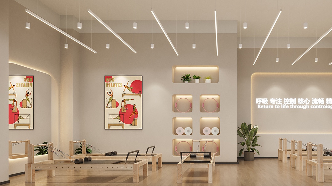 杭州輕奢風瑜伽館裝修設計,本案以「流動的靜奢」為核心理念,空間以低飽和米灰與淺香檳色為主調,弧形墻面嵌入金屬細線勾勒精致輪廓。定制透光云石接待臺與懸浮式更衣柜系統,提升輕盈質感。主練習區鋪設天然亞麻地墊,頂部懸掛漸變琉璃吊燈,可隨自然光變化呈現柔和光暈。重點打造「聲景冥想室」,采用星空頂與隱藏式環繞音響,結合植物香氛擴散系統,實現視覺、聽覺與嗅覺的多維療愈體驗。