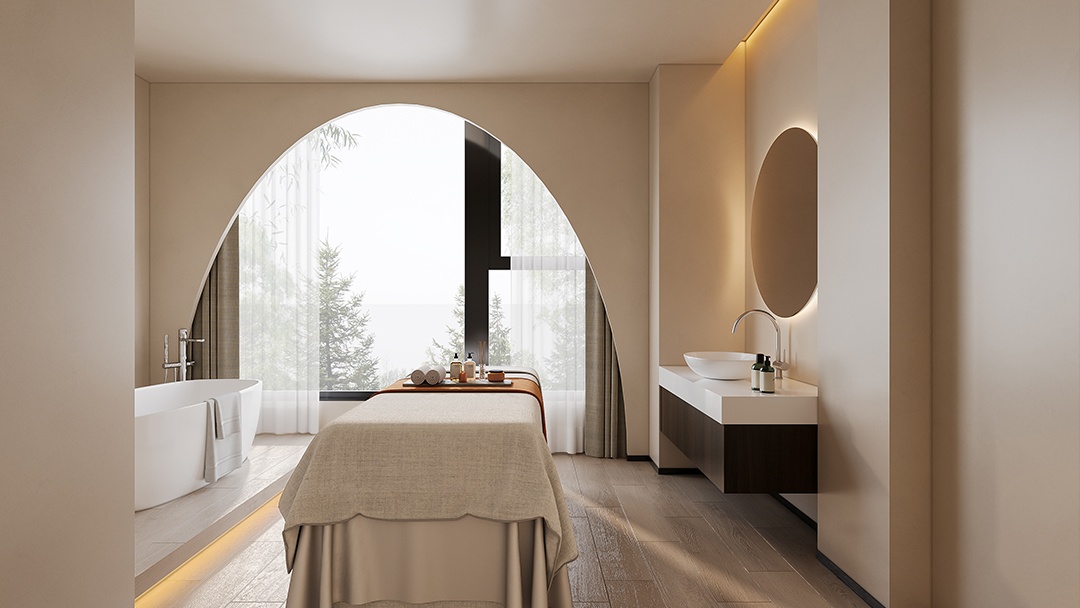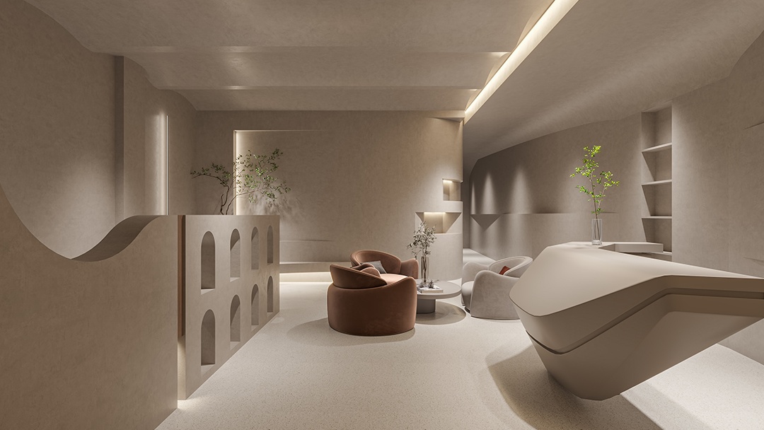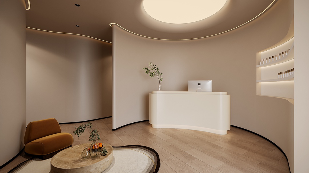 高端美容院的裝修,兼顧品質格調與自然意境。我們以原木色為主調,精選胡桃木、橡木等天然木材,通過深淺色調的層次拼接,打造溫暖而富有韻律的空間基底。木紋的天然肌理與幾何線條的精準切割形成碰撞,既保留自然的質樸感,又賦予現代設計的精致秩序。墻面,采用原木格柵與啞光金屬飾條拼接;地面,以淺灰大理石與木地板過渡銜接,營造視覺上的延伸與層次。定制化木作家具與軟裝布藝的柔和觸感,進一步強化空間的奢適氛圍。光影設計上,通過隱藏式燈帶與落地窗的自然采光,讓原木色在不同時段呈現溫潤變化,為每一位到訪者打造沉浸式自然療愈體驗,詮釋高端美容院的獨特美學語言。