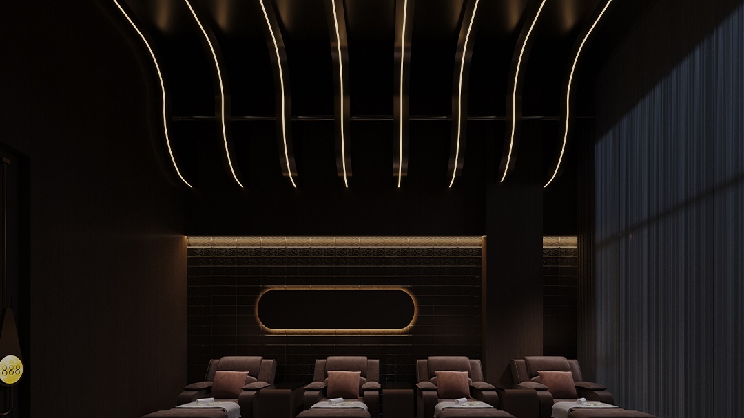 杭州日式湯泉風足浴會所裝修設計,本案打造沉浸式日式湯泉體驗。入口以枯山水與竹籬甬道引導,內部采用檜木通鋪與淺色障子門劃分空間。足浴區設下沉式巖盤座席,底部嵌入智能溫控足湯池,墻面點綴浮世繪藝術玻璃。霧化玻璃頂棚模擬天光變化,搭配竹筒滴水音效與檜木香氛,融合足部反射療法與溫泉礦物理療概念,在都市中重構京都湯宿的治愈儀式感。