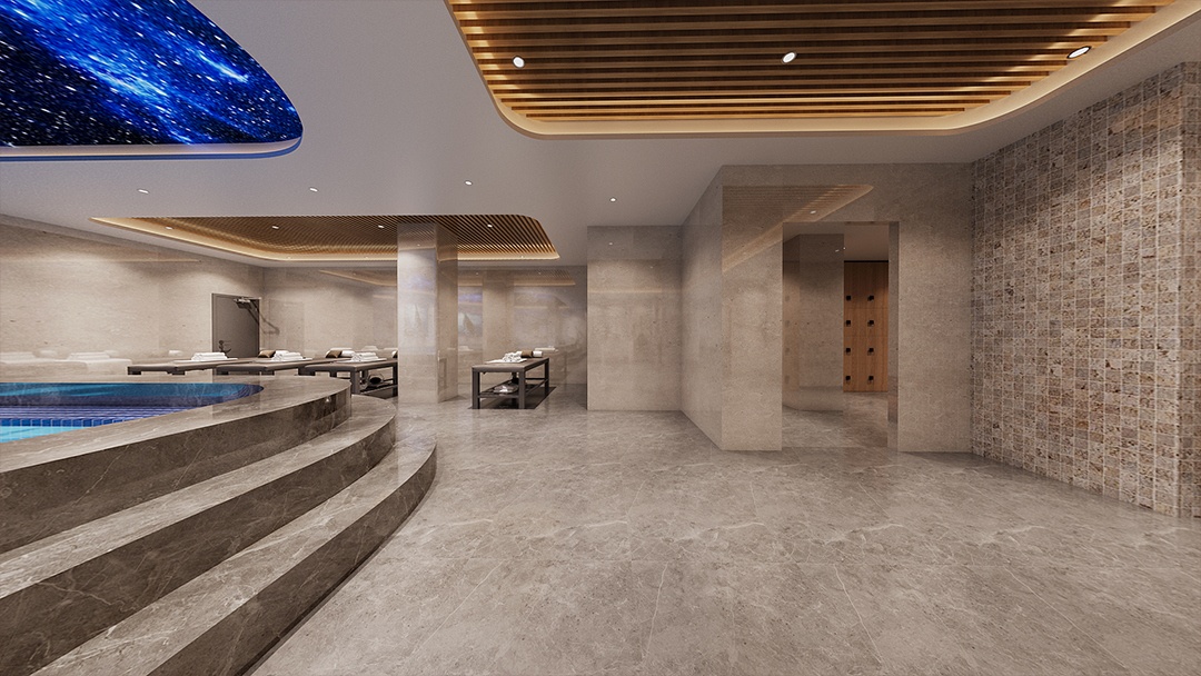 杭州現代簡約風足浴空間裝修設計,本案運用極簡設計語言釋放身心壓力。空間以米白與淺灰為主調,采用隱藏式收納系統與無踢腳線工藝,視覺高度統一。足療區配備一體化懸浮座椅,內置智能感應加熱功能,墻面嵌入漸變色呼吸燈帶。弧形天花鋪設柔性LED膜,可模擬星軌流動與極光漸變,配合環境音效系統,在至簡空間中構筑沉浸式感官療愈旅程。