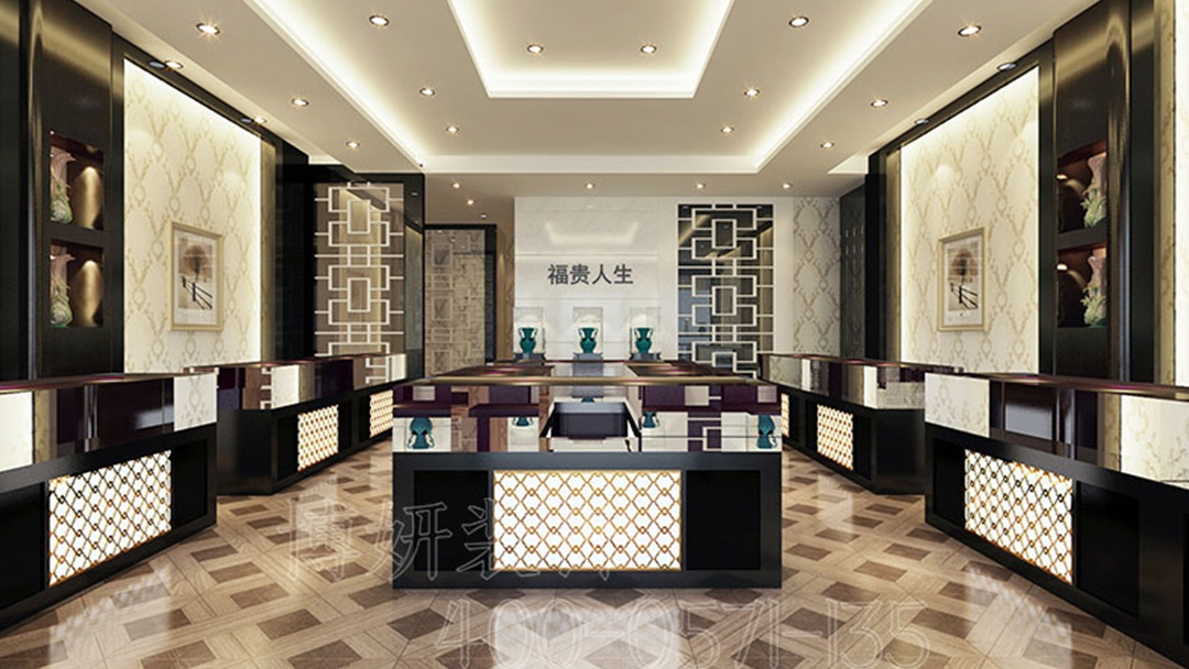杭州新中式珠寶店裝修設計,以黑色基調驚艷亮相,演繹出別具一格的東方美學。踏入店內,黑色主調營造出深邃而神秘的氛圍,似在訴說著珠寶跨越時空的傳奇故事。中式格柵元素巧妙運用,或作為隔斷劃分空間,或裝飾墻面增添層次,其線條簡潔流暢,勾勒出傳統與現代交織的獨特韻味。筒燈,如點點繁星,精準地投射在每一件珠寶上,柔和而明亮的光線,將珠寶的璀璨光芒無限放大,使其成為空間中的絕對焦點。黑色展柜與燈光相互映襯,更顯珠寶的精致與華貴。在這里,傳統與現代完美融合,黑色基調賦予空間沉穩大氣之感,中式格柵與筒燈的搭配,讓每一位顧客在靜謐雅致的環境中,開啟一場探尋東方珠寶之美的奇妙之旅。