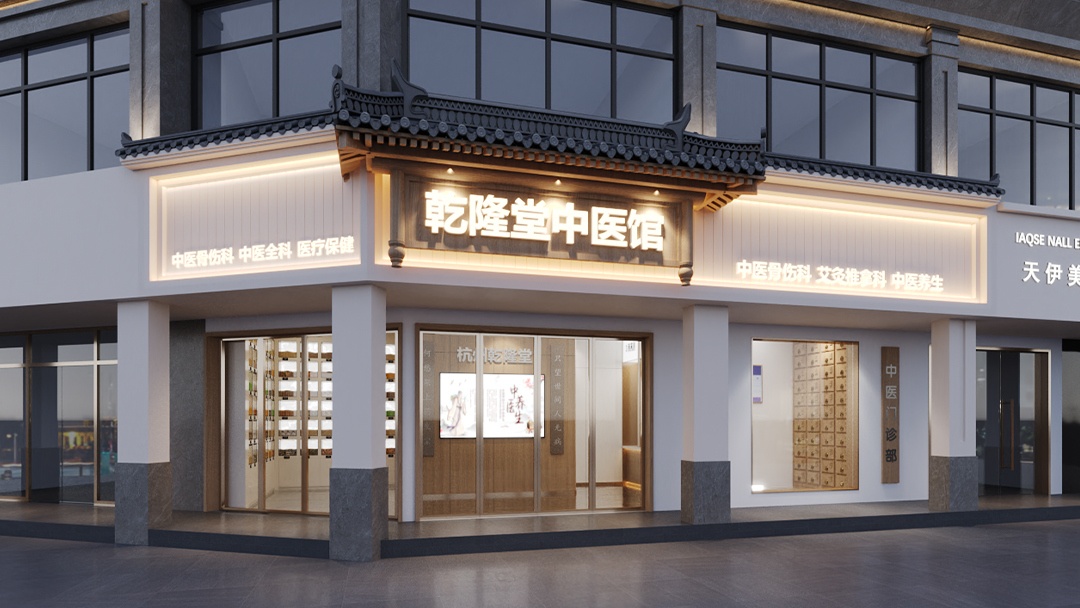 杭州新中式中醫館裝修設計,本案以“承古煥新”為理念,將江南文人精神與中醫“天人合一”哲學相融合。空間以胡桃木格柵與素色麻布為基底,藥柜區采用銅件包邊的百子柜陣列,配以隱形LED燈帶突顯藥材質感。候診區引入天井景觀,設置枯山水與藥用植物盆栽,營造靜心氛圍。診療室采用可移動宣紙屏風分隔,墻面嵌入經絡穴位發光示意圖,整體以溫潤材質與克制用色,構建既有文化認同感又符合現代診療效率的療愈空間。